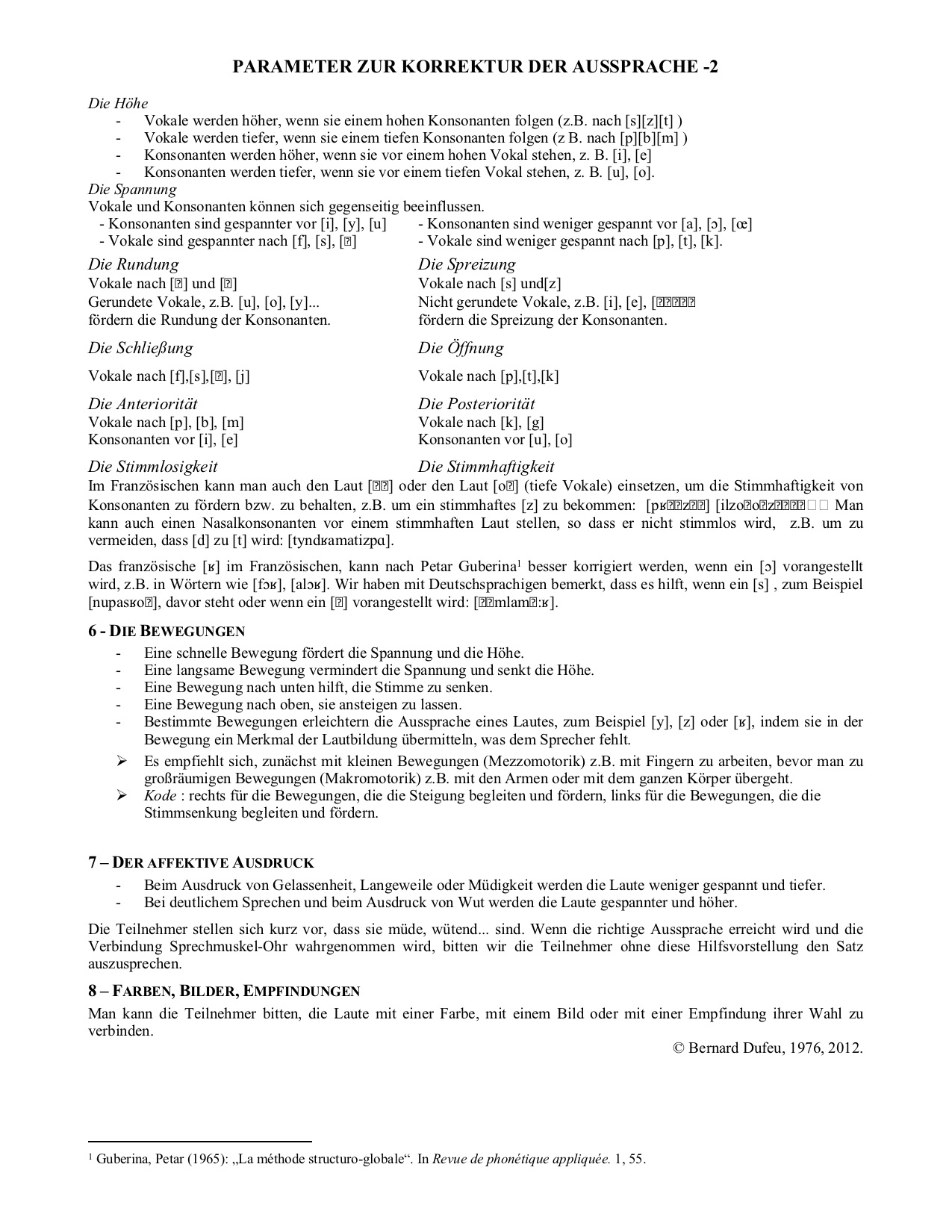 - Korrektur der Aussprache nach den Grundsätzen der verbo-tonalen Methode (4 Seiten).