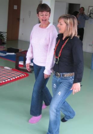 Wichtig sind hier die Aufwärm- und Zwischenübungen, die oft der Progression Körperausdruck – vokaler Ausdruck (Laute) – verbaler Ausdruck folgen.